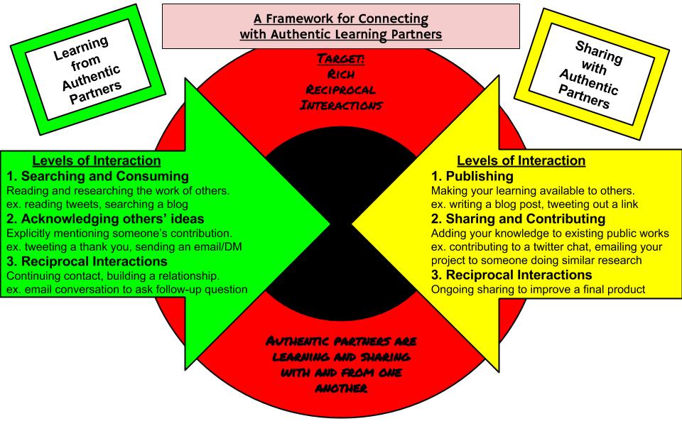 - we developed a framework that allowed us to conceptualize different levels of interaction when learning from and sharing with authentic partners, thus allowing us to plan and scaffold our lessons more effectively