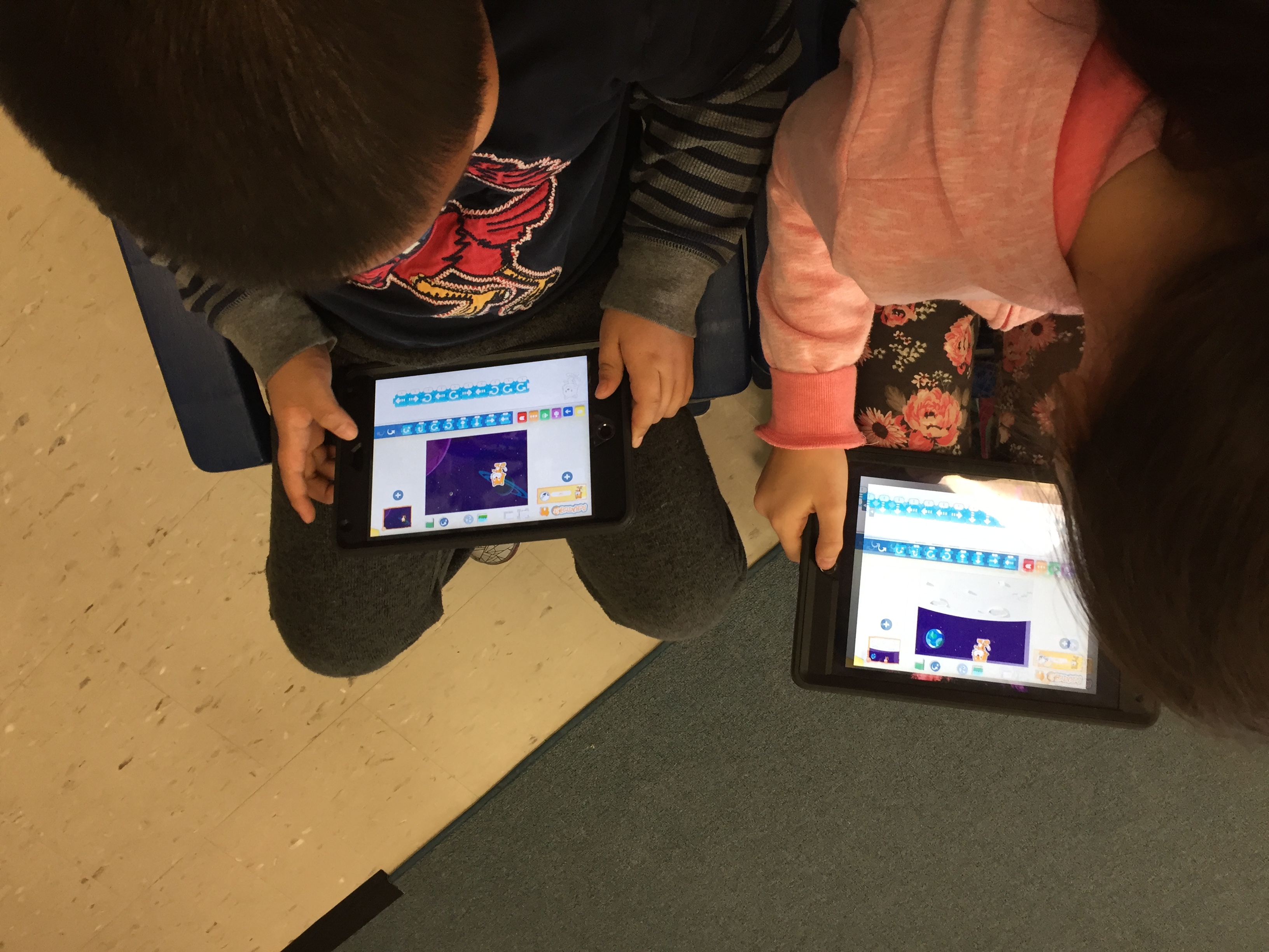 iPad apps: Explore, ScratchJr, Hopscotch, Bee-Bots, etc.