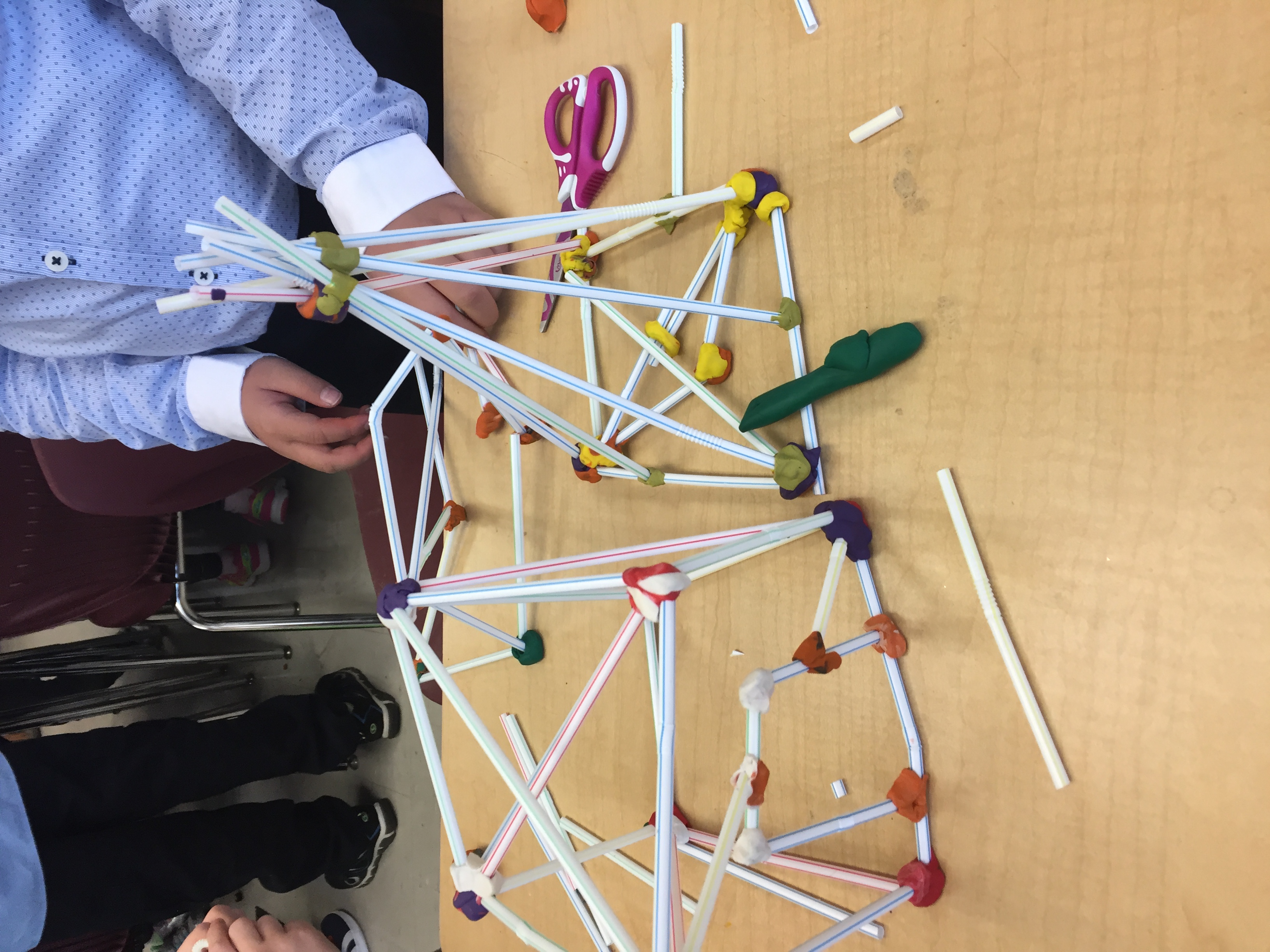 Connecting to our learning in math and with their buddies, students explored and identified various 3D figures in our environment. They then had an opportunity to build their own 3D structures with straws and plasticine that included many 3D shapes.