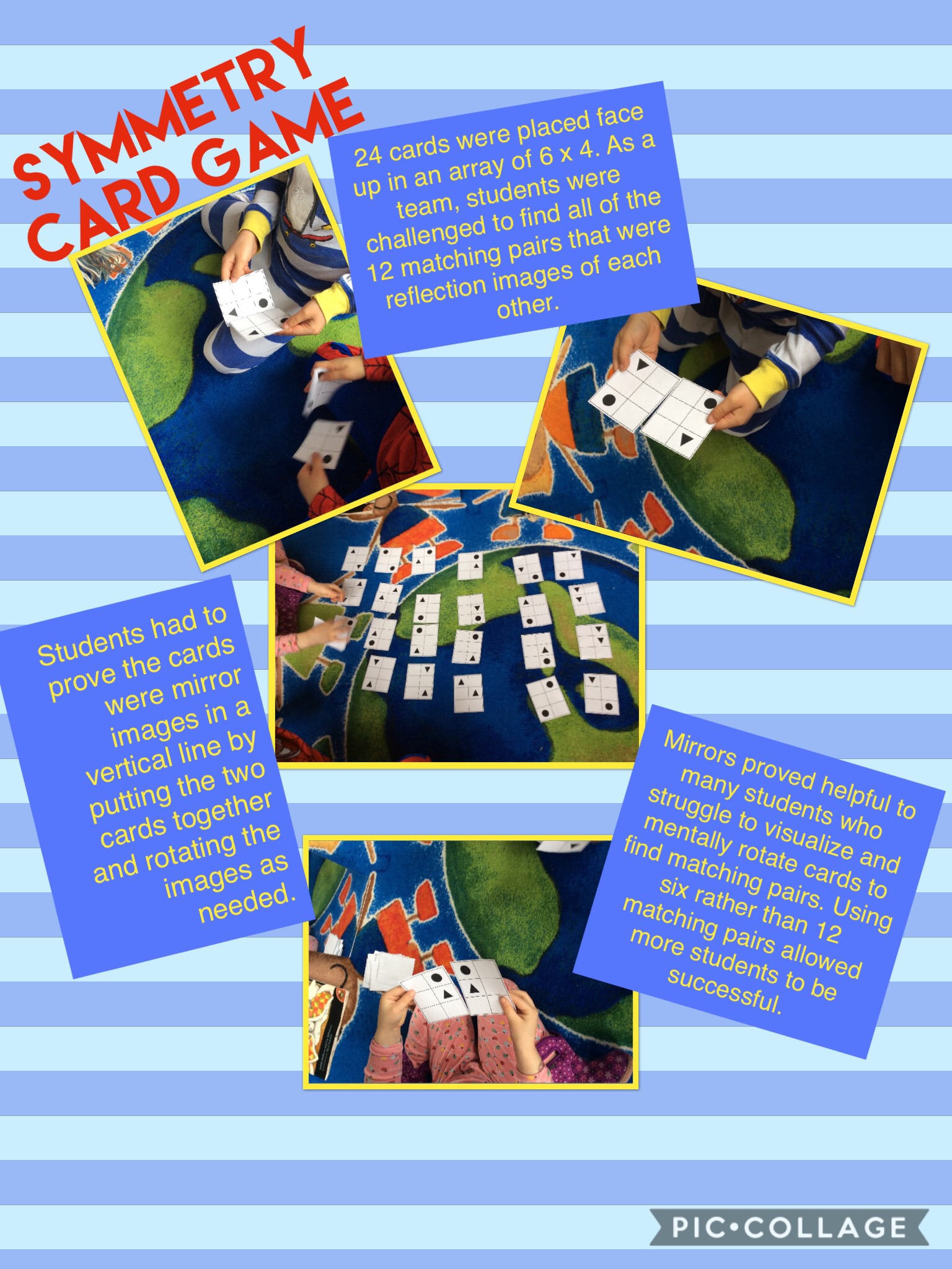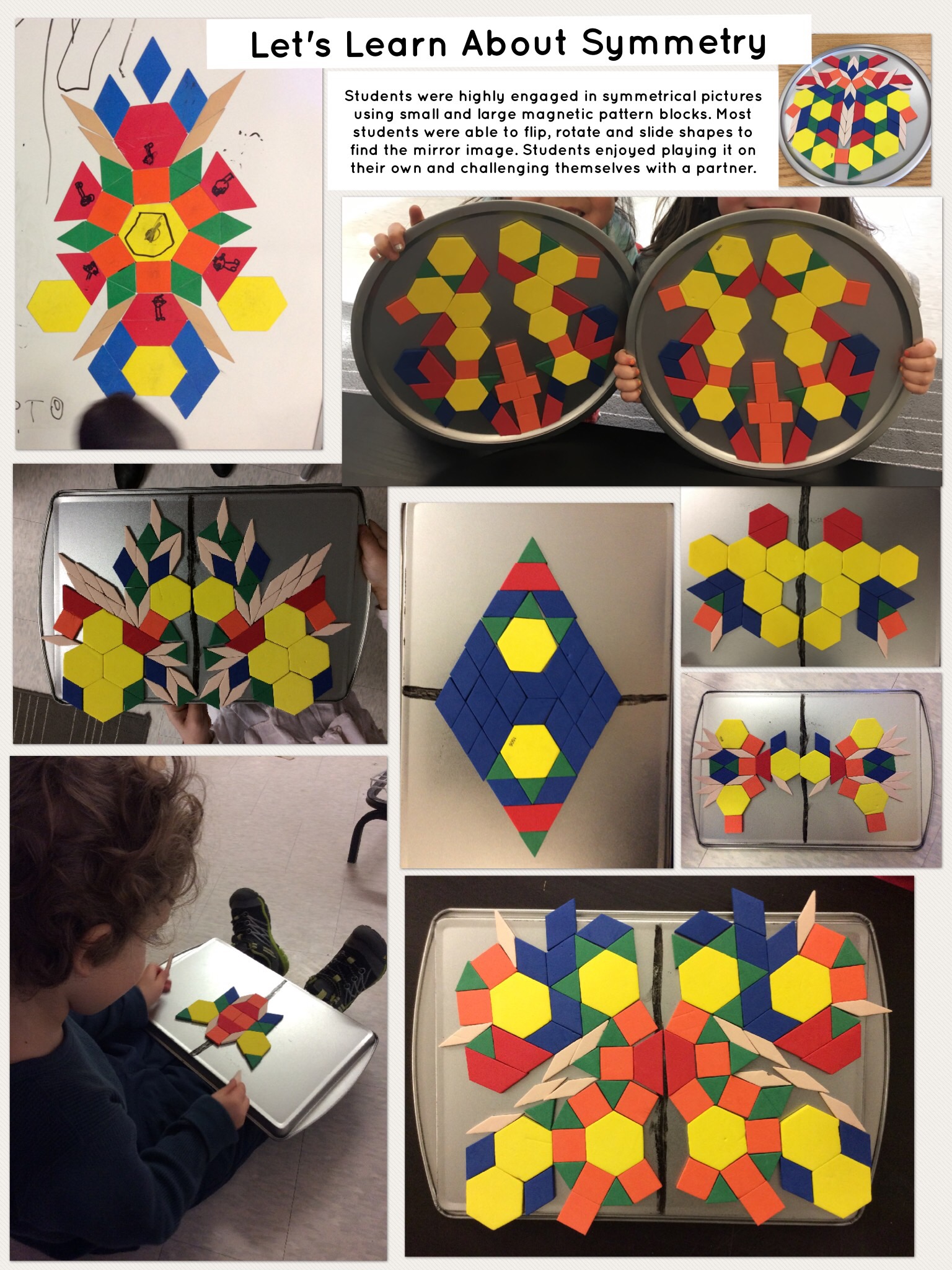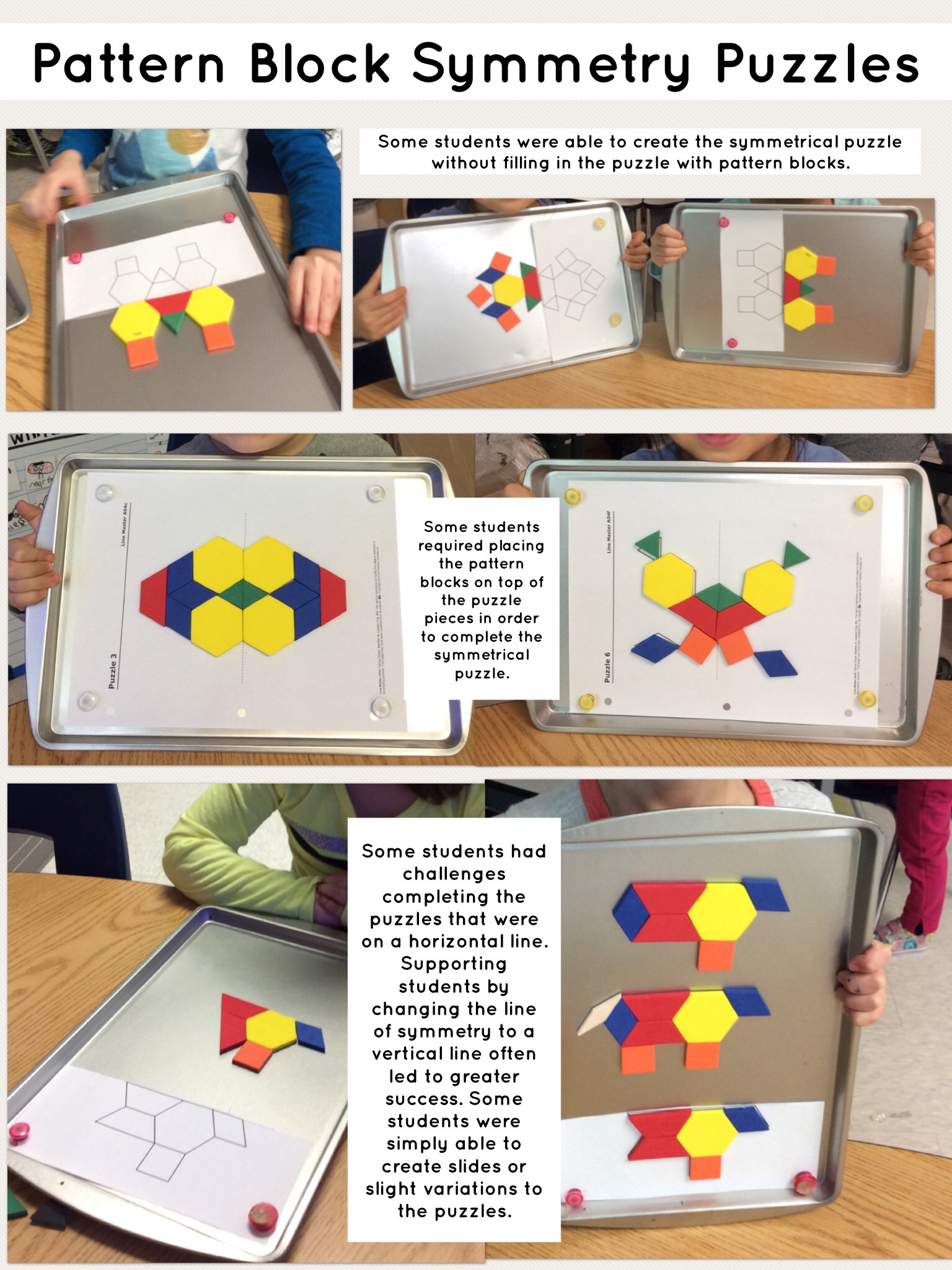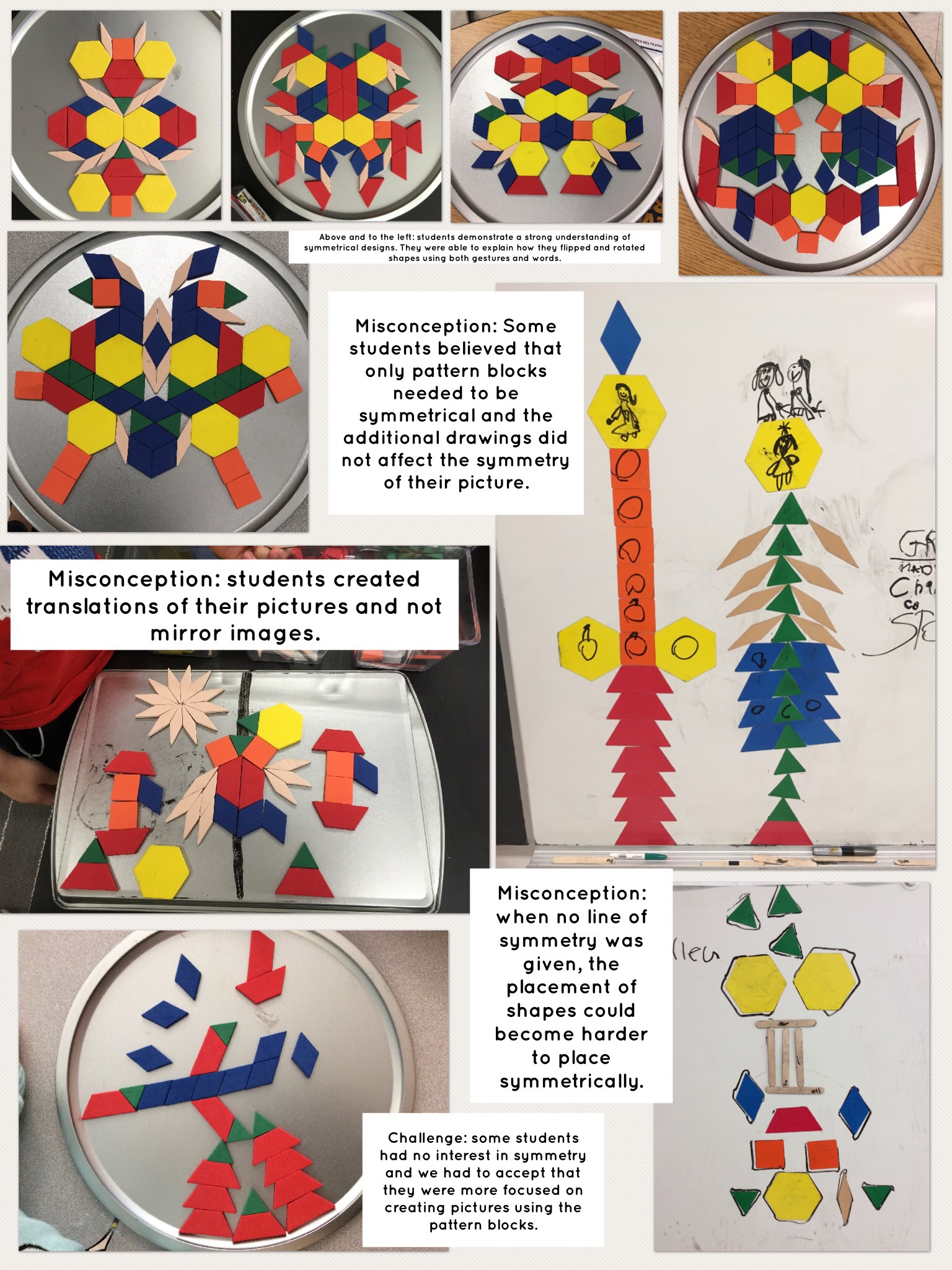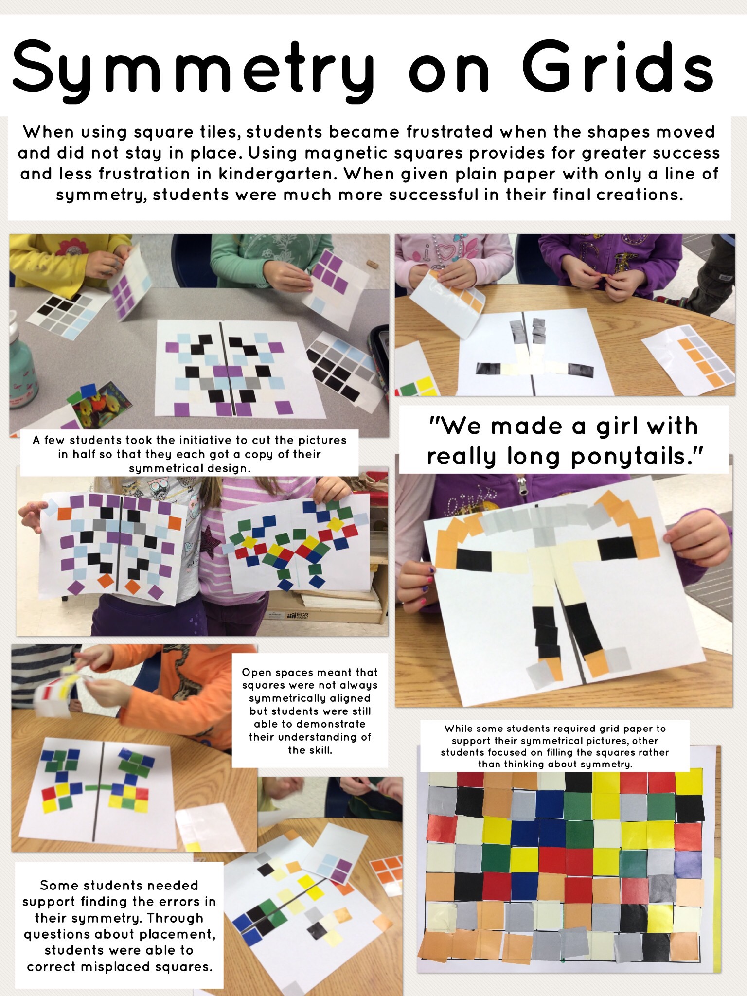 - When students were using non-magnetic materials (i.e., tiles) some became frustrated as they moved when bumped and did not stay exactly as placed. More magnetic materials would have relieved some frustrations.