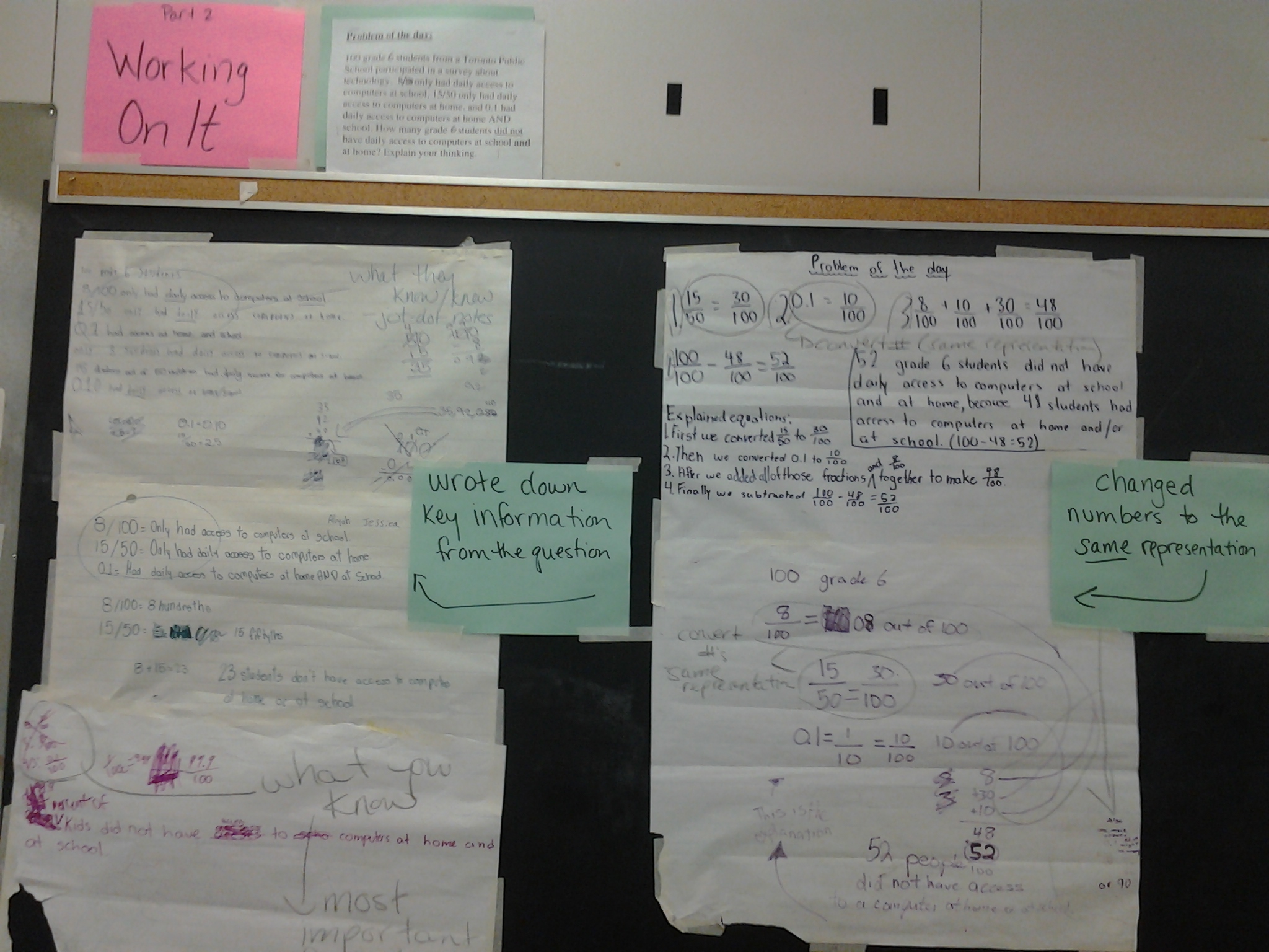 Our Grade 6 team explored the use of technology in a mathematics classroom. We invested in one projector for the team previously and we wanted to expand our use of this type of technology to support student learning. One recommendation that came out of our district review was the need for increased technology to be present/used in all classes. We currently share the use of iMacs that were provided through the Grade 6 provincial math initiative a few years ago, and we wanted to add a practical tool to share student work and mathematical representations (via manipulatives/tools) when working on hands-on learning tasks. We also created common benchmark tasks to build more consistency between classes and English/French panels.