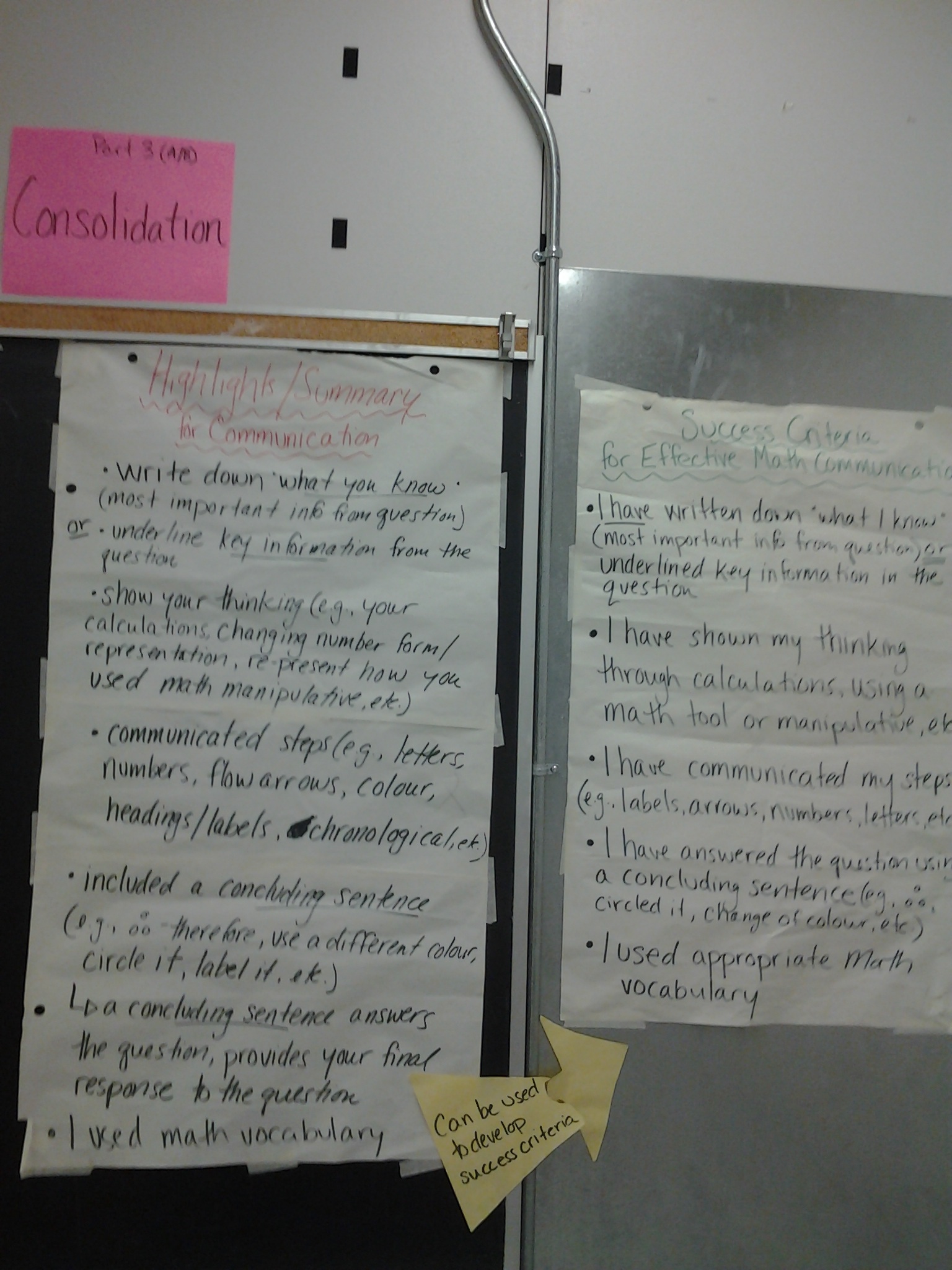 - generate a list of best practices/strategies used in class for mathematics (e.g., use as a high-yield math strategy, use within a three-part lesson, math journals, word walls, sharing manipulative models, use of both English and French during mathematics as a way to build vocabulary and prepare for EQAO, etc.)