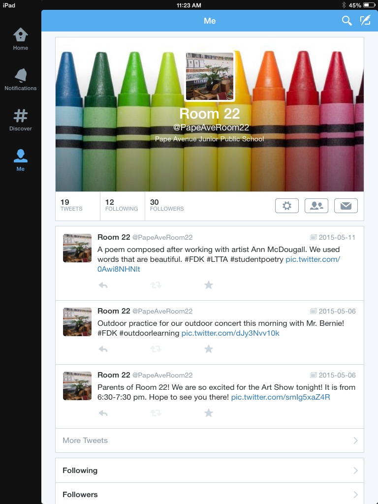 As we reflect at the end of our project, we consider the project to have been a great success. We feel strongly that this is because we set small, achievable goals (e.g., allowing time to familiarize ourselves with the iPads, researching and identifying appropriate apps, and quickly putting the iPads to use). Indicators of our success are that team members regularly use the iPads to document learning, and children use the apps to draw, write, explain thinking and communicate their  learning with others. The biggest surprise to us was how well-received the use of Twitter is in sharing learning with parents. Students and teachers are able to photograph examples of learning with comments that parents are able to access before the school day is over. Another indicator of success has been increased interest in writing about learning through the apps we used and through the use of Twitter.