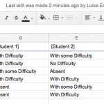 We made copies of the forms and personalized it to individual classes by populating students’ names. We gave access to ALL teaching staff. During divisional meetings, we demonstrated how to find, use and edit the Google Form. We also demonstrated how to sort and isolate student data or learning skills data in Google Sheets.