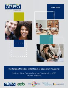 ← Back Breaking News June 28, 2024 Revitalizing Ontario’s Initial Teacher Education Programs – Position of the Ontario Teachers’ Federation (OTF) and its Affiliates – June 2024 Click here.