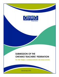 ← Back Breaking News December 18, 2018 Submission of the Ontario Teachers’ Federation to the Public Consultation on Education – December 2018