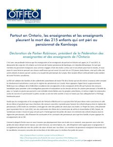 ← Retourner Nouvelles de dernière heure le 2 juin 2021 Déclaration de Parker Robinson, les enseignantes et les enseignants pleurent la mort des 215 enfants qui ont péri au pensionnat de Kamloops Cliquez ici