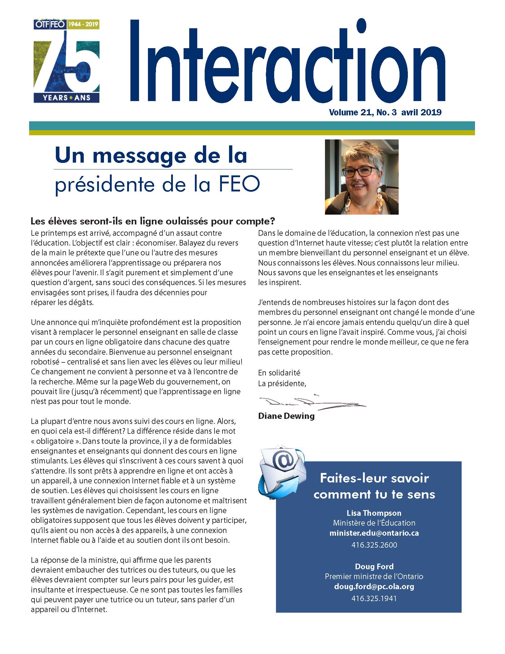 ← Retourner Nouvelles de dernière heure le 4 avril 2019 Interaction – avril 2019 Pour voir le dernier numéro d‘Interaction, cliquez ici.