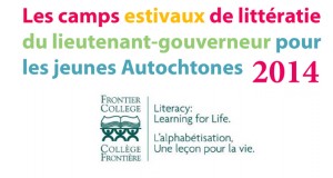 Le Collège Frontière, qui administre les camps, a présenté son rapport sur les camps de 2014 et a honoré les contributions des partenaires du projet. La FEO soutient activement cette initiative depuis son lancement par l’ancien lieutenant-gouverneur, l’honorable James Bartleman. La FEO est fière de parrainer chaque année le camp de Fort Hope et a l’intention de poursuivre son soutien pour l’avenir. Pour en savoir davantage ou pour consulter le rapport de 2014, visitez le site du Collège Frontière, au www.frontiercollege.ca.