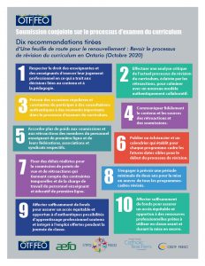 La FEO et ses quatre filiales ont plutôt choisi de saisir l’occasion pour se concentrer sur la prestation de rétroactions positives concernant le processus de révision du curriculum du ministère de l’Éducation, étant donné que le modèle actuel ne répond pas aux besoins du personnel enseignant et éducatif en Ontario.