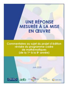 ← Retourner Nouvelles de dernière heure le 29 juin 2020 Une réponse mesurée à la mise en œuvre – Commentaires au sujet du projet d’édition révisée du programme-cadre de mathématiques (de la 1re à la 8e année)